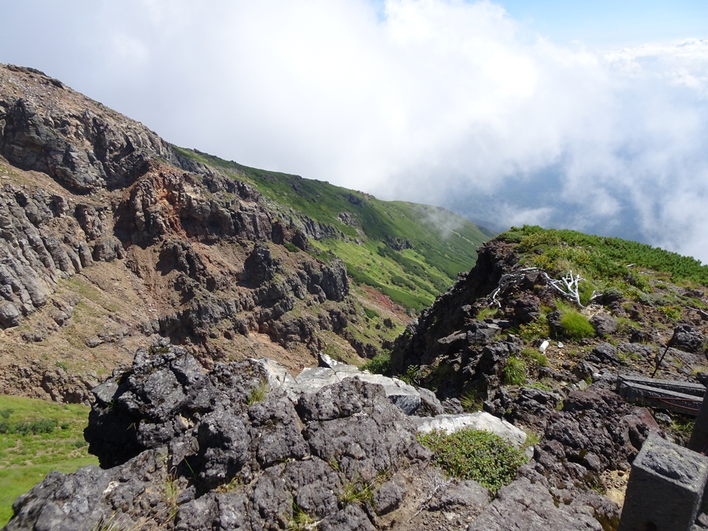 私の下りは膝にくるので、ストック(一本)を使ってます。ゆっくり、慎重に。
